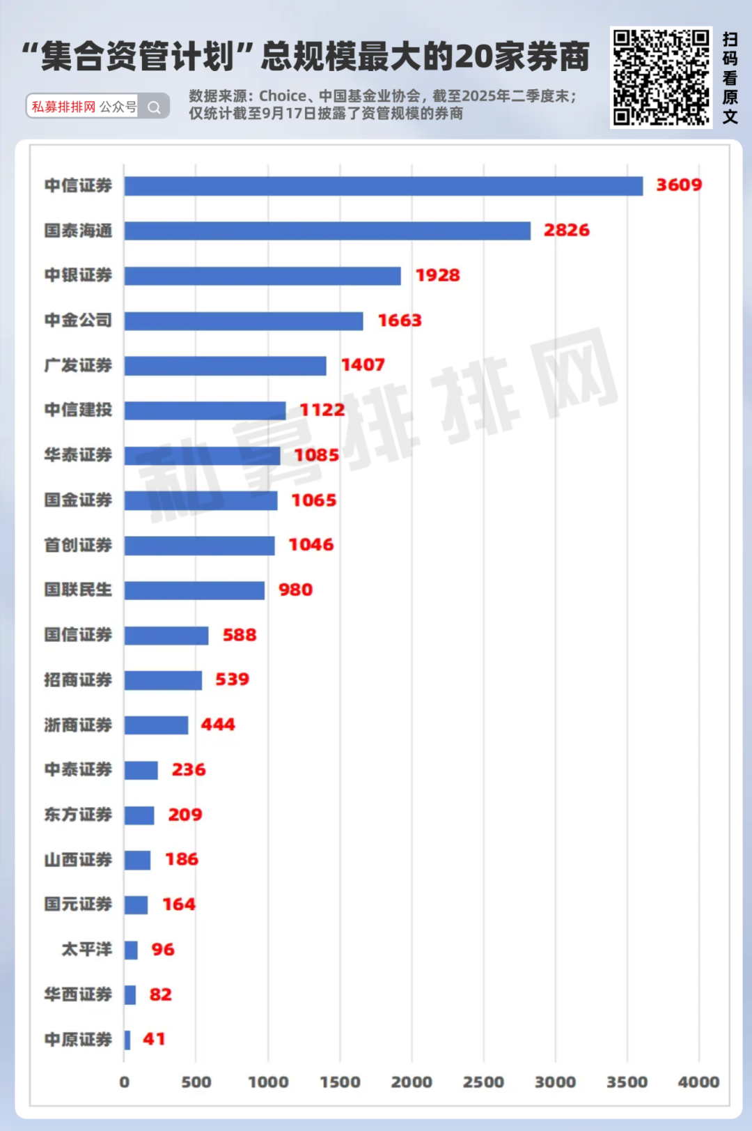 贵府开端:中国基金业协会官网笔据Choice数据,截止9月17日,依然有22家券商流露了其“蚁集资管筹划”规模。其中,中信证券、国泰海通、中银证券、中金公司、广发证券、中信建投、华泰证券、国金证券、创始证券等9家券商的“蚁集资管筹划”规模均在千亿元级别。中信证券以3609亿元的管束规模位列第1。