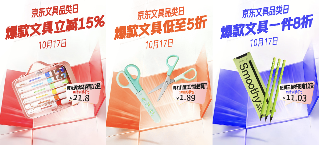 围绕不同使用场景,京东文具品类日为民众带来超多爆款文具,灭绝学诞辰常学习与创意需求,官方直降,价钱更低。曙光丙烯马克笔12色立减15%,预估平直价21.8元,适持绘、手账创作等场景;还有过劲儿童DIY绿色剪刀,专为儿童诡计,爆款文具低至5折,预估平直价1.89元;纽赛三角杆铅笔10支,三角杆诡计贴持型,一件8折,预估平直价11.03元。